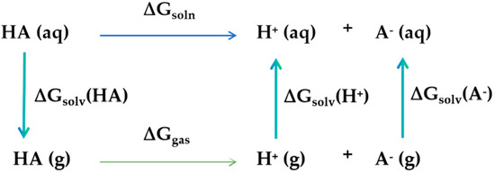 - Toth, A.M.; Liptak, M.D.; Phillips, D.L.; Shields, G.C. Accurate Relative pKa Calculations for Carboxylic Acids Using Complete Basis Set and Gaussian-n Models Combined with Continuum Solvation Methods. J. Chem. Phys. 2001, 114, 4595–4606. [Google Scholar] [CrossRef]