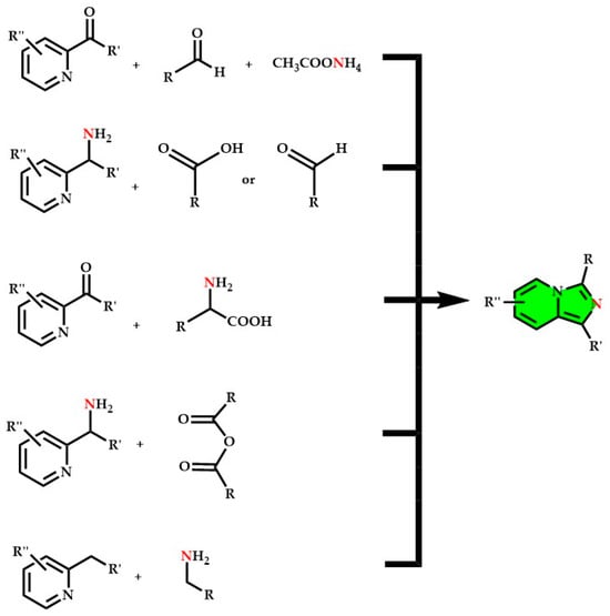 More recently, imidazo[1,5-a]pyridines are mainly synthesized through condensation reactions (see Figure 8 and Figure 9). Over the years, various catalytic and non-catalytic methods have been developed.