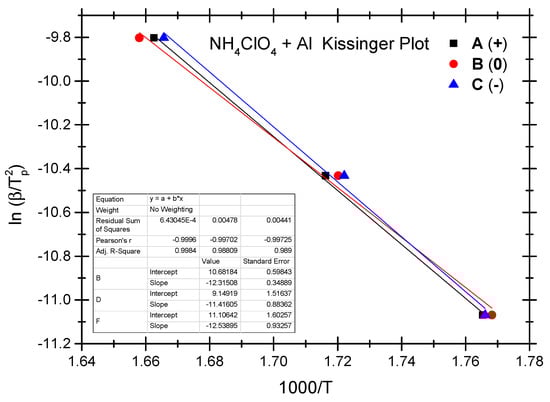 Kissinger fitting diagram of ammonium perchlorate-aluminium system.
