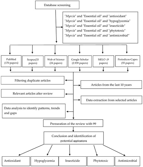 The present study provides a comprehensive analysis of the chemical composition of essential oils from species of the Myrcia genus and their applications. The compiled results highlight the chemical diversity and biological activities of these oils, emphasizing their potential importance for various therapeutic and industrial applications. The findings reveal that Myrcia essential oils present a variety of bioactive compounds, such as monoterpenes and sesquiterpenes, which demonstrate antimicrobial activities against a range of microorganisms, including Gram-positive and Gram-negative bacteria, as well as yeasts. Furthermore, this study highlights the phytotoxic activity of these oils, indicating their potential for weed control. The results also point to the insecticidal potential of Myrcia essential oils against a range of pests, showing their viability as an alternative to synthetic pesticides. Additionally, species of the genus Myrcia have demonstrated promising hypoglycemic effects, suggesting their potential in diabetes treatment. This comprehensive synthesis represents a significant advancement in understanding Myrcia essential oils, highlighting their chemical diversity and wide range of biological activities. However, the need for further research is emphasized to fully explore the therapeutic and industrial potential of these oils, including the identification of new compounds, understanding of their mechanisms of action, and evaluation of safety and efficacy in different contexts.