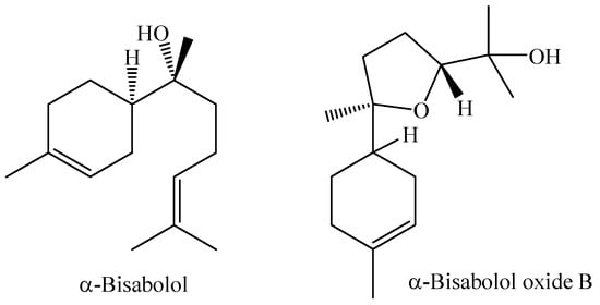 - Ramazani, E.; Akaberi, M.; Emami, S.A.; Tayarani-Najaran, Z. Pharmacological and Biological Effects of Alpha-Bisabolol: An Updated Review of the Molecular Mechanisms. Life Sci. 2022, 304, 120728. [Google Scholar] [CrossRef] [PubMed]