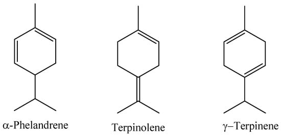 - Sheeba, S.; Nahida, T. Effect of Some Naturally Occurring Monoterpenes Viz D-Limonene, p-Cymene and Terpinolene on the Glycemic and Hepatic Function in a Rat Model of Type 2 Diabetes Mellitus. Pharmacogn. Res. 2022, 14, 446–453. [Google Scholar]