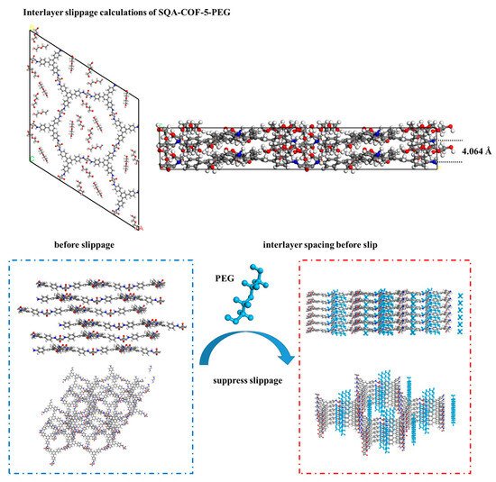 SQA-COF-5-PEG layer distance before slippage and effect of PEG suppressing slippage.