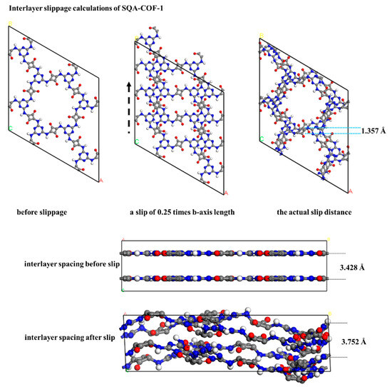 SQA-COF-1 layer distance before and after slippage and actual slip distance.