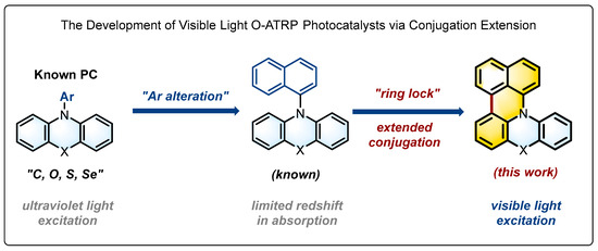 The development of visible-light O-ATRP photocatalysts with extended conjugation.