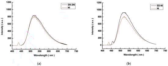 Fluorescent spectra of SN-2NI (a) and SD-NI (b).