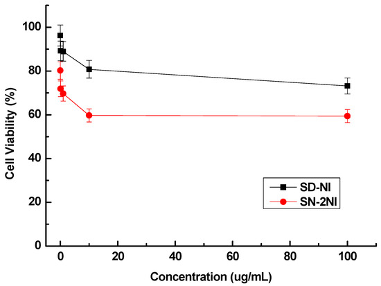 In vitro cytotoxicity assay of SN-2NI and SD-NI to B16F10 cells.