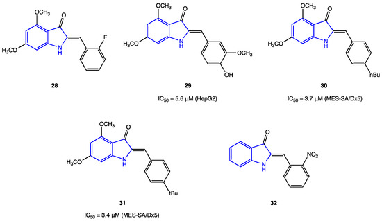 2.1. Indolin-3-One Derivatives (Azaaurones)