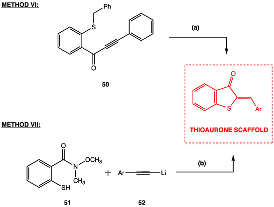 - Lee, J.I. One-pot synthesis of (Z)-thioaurones from N-methoxy-N-methyl 2-mercaptobenzamide and arylethynyllithiums. J. Korean Chem. Soc. 2019, 63, 398–402. [Google Scholar] [CrossRef]