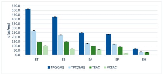 | Sample | VCEAC [µg Vit C/mg Ex] | TEAC [µg Trolox/mg Ex] |