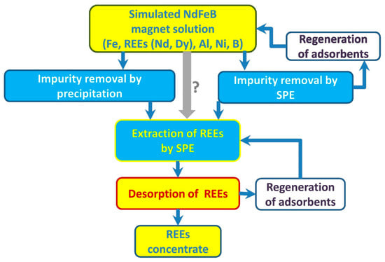 Schematic presentation of REE recovery from simulated NdFeB magnet solution via proposed hydrometallurgical processes [].
