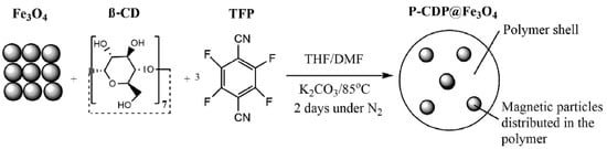 Schematic representation of the synthesis of P-CDP@Fe3O4 [].