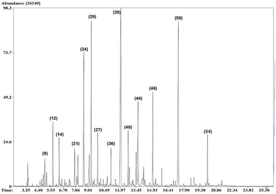 Total Ion Chromatogram (TIC) of the essential oil of A. judaica.