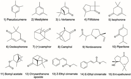 Chemical structures of the main compounds identified in A. judaica essential oil.