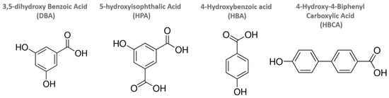 Structures of hydroxyaromatic carboxylic acids used in grafting reactions.