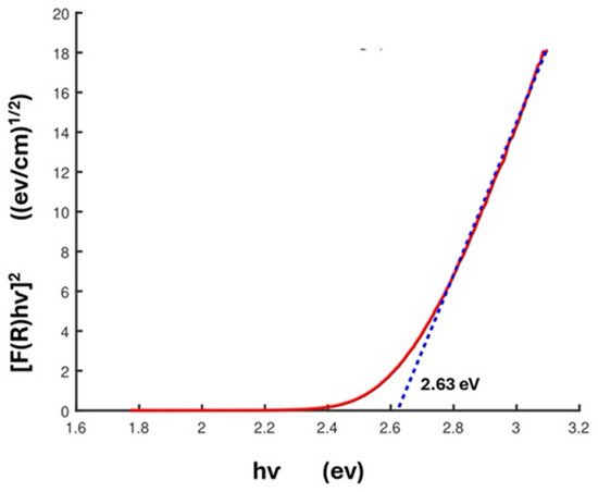Percentage reflectance data were used to obtain Tauc plots. All the spectra were normalized to minimize the influence of the sample preparation on the optical responses. Such layered materials are reported to exhibit indirect band gaps [28,37]. The equation employed for calculating the band gap via a Tauc plot is
