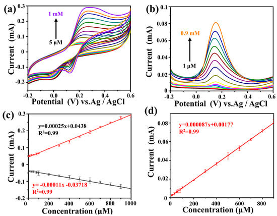 In Figure 5b, it can be seen that the linear detection range of DPV is from 1 μM to 0.9 mM.
