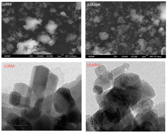 SEM images of RM (a) and ARM (b), and TEM images of RM (c) and ARM (d).
