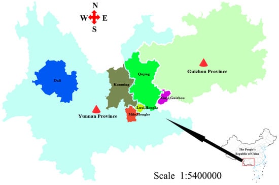 The collected samples from the geographic region of Luxi and Mile, Honghe, and other areas of Yunnan province (Dali, Fuming, Qujing), Xingyi, and Guizhou province.