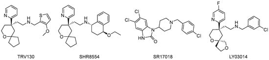 - Ma, M.; Sun, J.; Li, M.; Yu, Z.; Cheng, J.; Zhong, B.; Shi, W. Synthesis and Evaluation of Novel Biased μ-Opioid-Receptor (μOR) Agonists. Molecules 2019, 24, 259. [Google Scholar] [CrossRef] [PubMed]