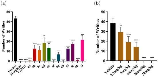 2.3.1. Evaluation of Antinociceptive Activities of the Novel Compounds in the Acetic Acid-Induced Writhing Assay
