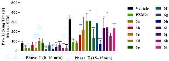 2.3.3. Antinociceptive Activities of the Novel Compounds in a Formalin-Induced Nociception Assay
