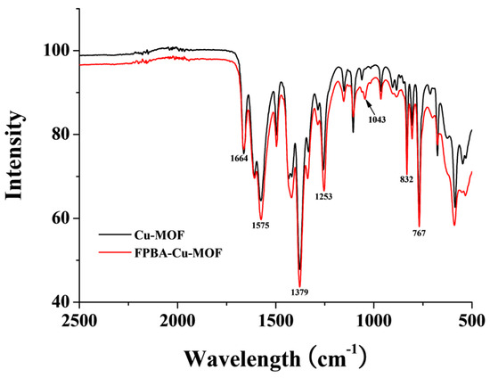 FT-IR spectra of Cu-MOF and FPBA-Cu-MOF.