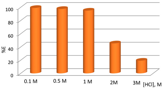 Effect of HCl concentration on extraction efficiency of Pd(II) with 0.1 M TBAB in toluene.
