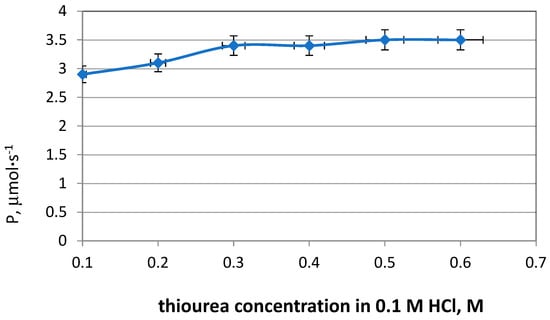 Effect of thiourea concentration in 0.1 mol·dm−3 HCl as receiving phase on permeability coefficient (P). Source phase: 0.001 mol·dm−3 Pd(II) in 0.1 mol·dm−3 HCl.