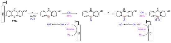 A potential mechanism for sulfoxide and sulfone formation from PTZs under electrochemical conditions in non-anhydrous acetonitrile solvent.
