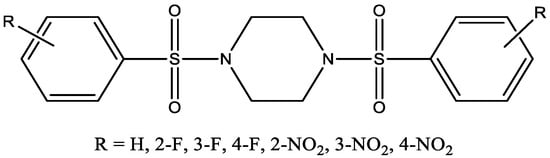 In vitro biological evaluation study showed DPP-4 inhibitory activity for the sulfonyl piperazine derivatives (Figure 24) ranging from 19% to 30% at 100 μM concentration [37]. Furthermore, the in vivo hypoglycemic activity of 1,4-bis(4-fluorophenylsulfonyl)piperazine was evaluated using streptozotocin-induced diabetic mice. It was found that 1,4-bis(4-fluorophenylsulfonyl)piperazine significantly decreased the blood glucose level when the diabetic group treated with 1,4-bis(4-fluorophenylsulfonyl)piperazine was compared to the control diabetic group. Quantum-Polarized Ligand Docking (QPLD) studies demonstrate that these compounds fit the binding site of the DPP-4 enzyme and form H-bonding with the backbones of R125, E205, E206, K554, W629, Y631, Y662, R669, and Y752.