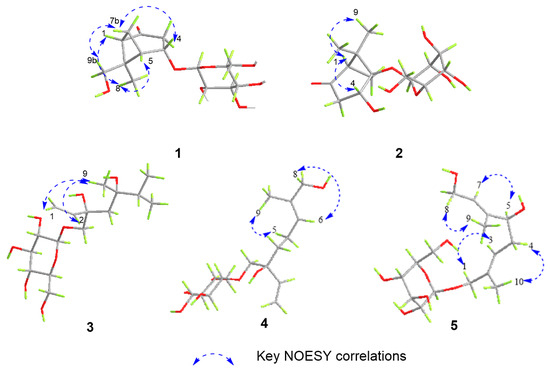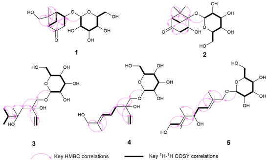 Key 1H-1H COSY and HMBC correlations of compounds 1–5.