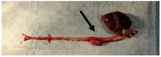 Construction of the sewn conduit after removal from the animal’s body. An arrow indicates the conduit.