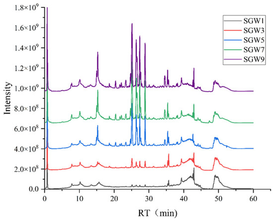 The total ion chromatograms (TICs) of SGW samples after different repeated thermal processes using UHPLC-Q-Exactive-MS/MS in the negative ion mode.