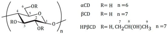 The hydrogen chemical shift (δ) and chemical shift differences (Δδ) of CDs and their complexes are summarized in Table 7 (1H NMR spectra in Supplementary Materials).