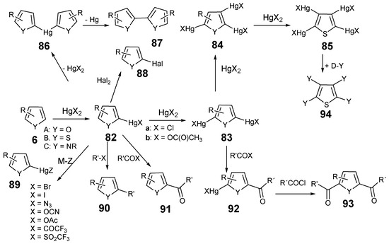 - Gilman, H.; Wright, G.F. Furan Mercurials. J. Am. Chem. Soc. 1933, 55, 3302–3314. [Google Scholar] [CrossRef]