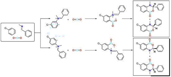 - Sabet-Sarvestani, H.; Eshghi, H.; Izadyar, M. Substituent effects and mechanism studies in CO2 transformation to benzoxazinone derivatives as worthwhile N-containing heterocycles: Insight from Density functional theory. Int. J. Quantum Chem. 2021, 121, e26784. [Google Scholar] [CrossRef]