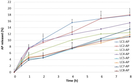 2.2. In Vitro Release Profile of Ascorbyl Palmitate