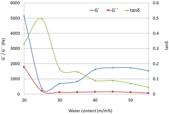 | Sample | W/S Ratio | η (Pas) 25 °C | η (Pas) 32 °C | η (Pas) 37 °C | tan δ (100 Hz) |