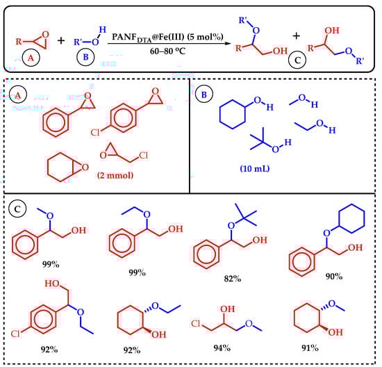 - Shi, X.L.; Sun, B.; Hu, Q.; Chen, Y.; Duan, P. Fiber-Supported Fe (III) Complex Catalyst in Spinning Basket Reactor for Cleaner Ring-Opening of Epoxides with Alcohols. Green Chem. 2019, 21, 3573–3582. [Google Scholar] [CrossRef]