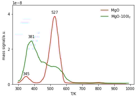 - I2 adsorption on MgO at 473 K for 15 min; desorption at 473 K for 15 min.
