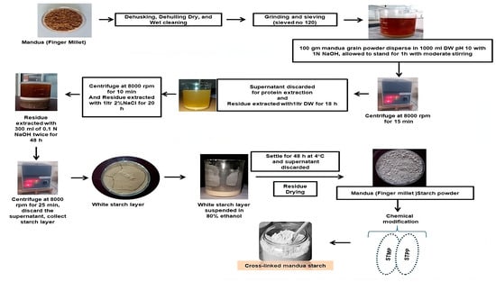 Schematic representation of the procedure for the isolation and modification of mandua starch.