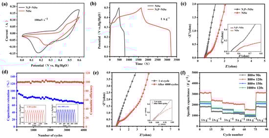 Lu, Z.; Kang, H.; Duan, Q.; Lv, C.; Liu, R.; Feng, F.; Zhao, H. The Preparation of N, P-Doped NiSe Nanorod Electrode Materials on Nickel Foam Using the Microwave Method for High-Performance Supercapacitors. Molecules 2024, 29, 3224. https://doi.org/10.3390/molecules29133224