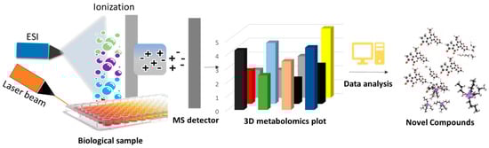 The process in which structural information about a chemical compound is used for its identification among the sample data is called ‘dereplication’. The dereplication process has been proven to be an essential step in natural product research. The dereplication method enables the rapid detection of chemical compounds from the crude MS data during the screening of natural products [117]. Thus, dereplication enhances the performance of high-throughput screening of natural products [118]. Several databases, such as PubChem (≈83 million compounds), ChemSpider (≈58 million), ChEMBL (≈2.1 million), ChemBank (≈1.2 million), ChEBI (440,000), SciFinder (≈161 million), and several other libraries, are available with the structural information of millions of chemical compounds [119]. This approach eventually eliminates the re-isolation and structural identification processes [117].
