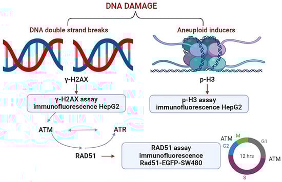 - Rahmanian, N.; Shokrzadeh, M.; Eskandani, M. Recent advances in γH2AX biomarker-based genotoxicity assays, A marker of DNA damage and repair. DNA Repair 2021, 108, 103243. [Google Scholar] [CrossRef] [PubMed]