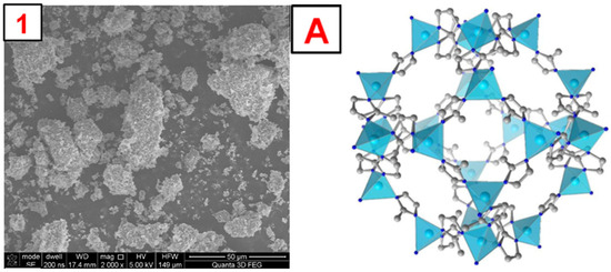 1—photo of the obtained ZIF-8(Zn). A—a schematic representation of the ZIF-8(Zn) structure [38].