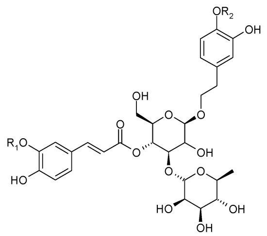| (7) isoacteoside | R1 = H; | R2 = H |