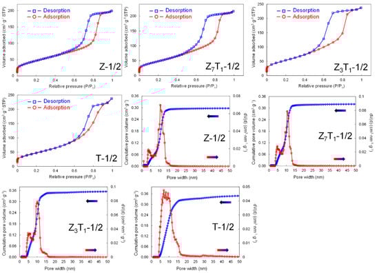 44], and the hysteresis loops correspond mainly to the presence of the mesopores (2–50 nm). The detailed porosity data are summarized in