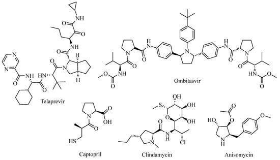 - Poyraz, S.; Döndaş, H.A.; Döndaş, N.Y.; Sansano, J.M. Recent insights about pyrrolidine core skeletons in pharmacology. Front. Pharmacol. 2023, 14, 1239658. [Google Scholar] [CrossRef]