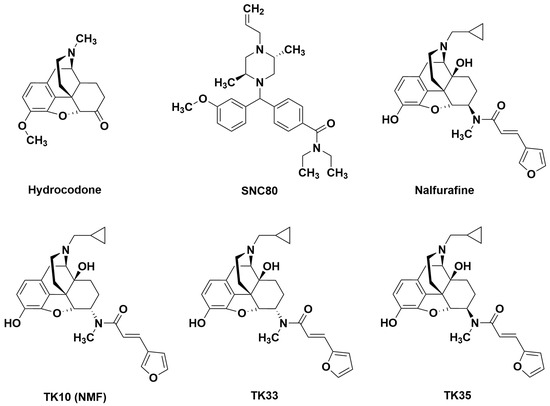 - Broom, D.C.; Nitsche, J.F.; Pintar, J.E.; Rice, K.C.; Woods, J.H.; Traynor, J.R. Comparison of receptor mechanisms and efficacy requirements for delta-agonist-induced convulsive activity and antinociception in mice. J. Pharmacol. Exp. Ther. 2002, 303, 723–729. [Google Scholar] [CrossRef]